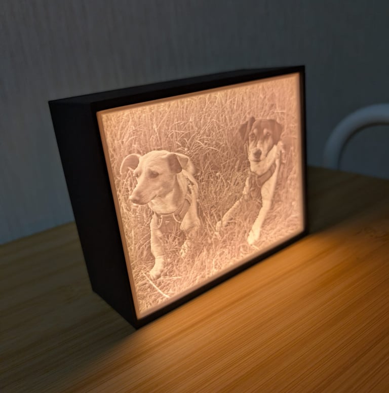 Ich verwandle dein Foto in eine dreidimensionale Lichtskulptur, die bei eingeschaltetem Licht ihre ganze Tiefe entfaltet.